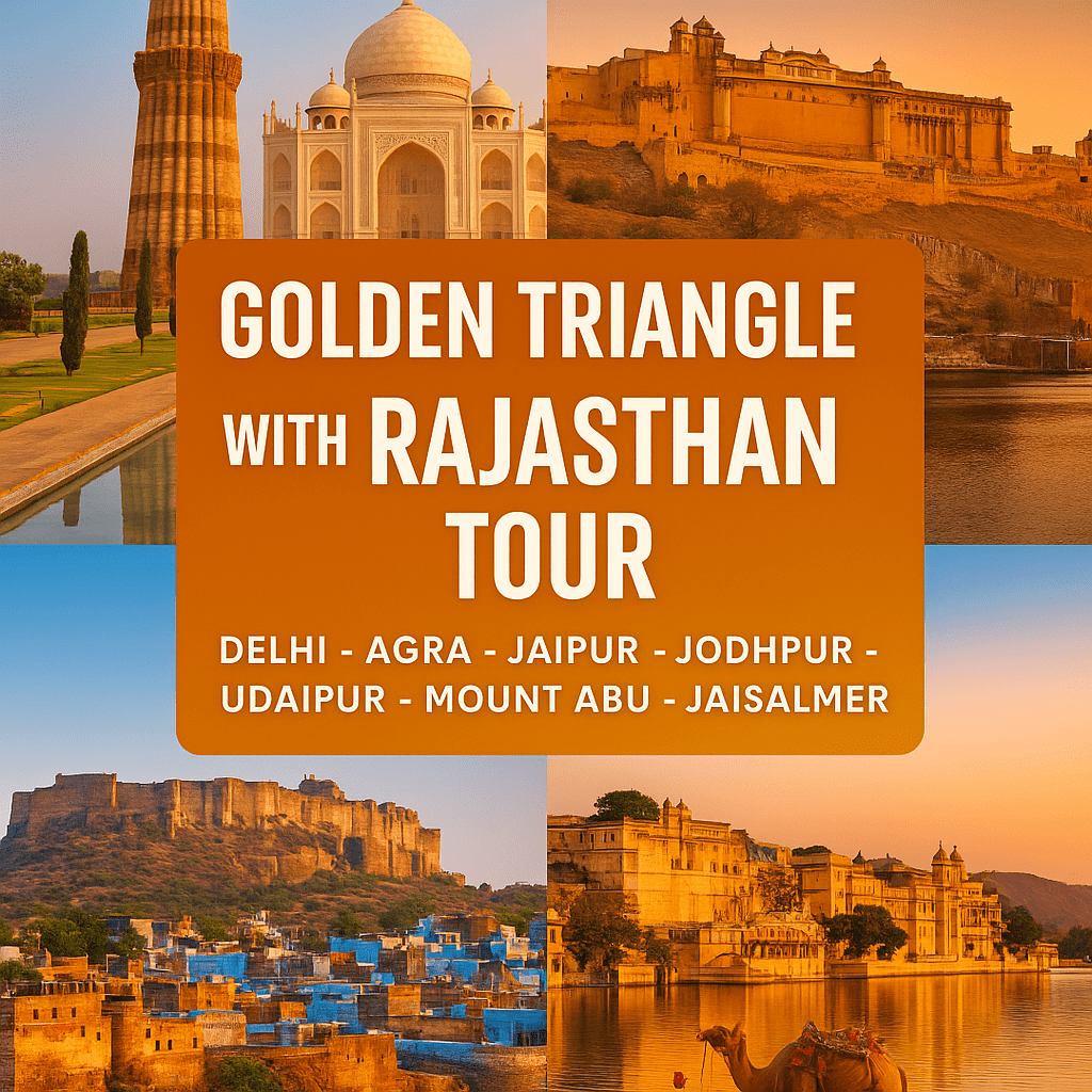 Destinations Covered : Delhi, Agra, Jaipur, Jodhpur, Udaipur, Mount Abu, and Jaisalmer